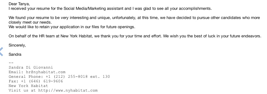 Rejection emails are the worst. Especially the vague, standard, sometimes automated emails that simply add to the suspicion that even if you are truly enthusiastic and well equipped for a job, you don’t matter unless you can prove it on paper. Passion is an asset that employers should seek out, but it appears that more and more companies have values elsewhere. I applied for an entry-level social media position at New York Habitat because I felt passionately about the work the company does, I knew it was a job I would enjoy and I wholeheartedly felt I possessed all of the qualities – both in my personality and my knowledge within the field of work – to perform well and quite frankly, make improvements. The millennial  generation is one that is not only eager to learn and make their mark in this world, but has also grown up learning to use improving technology to their advantage. Many current job listings in marketing, for example, are advertising positions that seek 5+ years experience in digital marketing when digital marketing only just became an effective form of marketing within the last few years. Therefore, how can companies use an experience level like this as a prerequisite when it’s literally impossible to possess? It makes more sense to hire some hot-shot recent graduate who has been effectively using digital marketing nonstop for the last few years, who is constantly looking for new ideas and better ways to make an impact because that’s exactly what they’ve known to do throughout their young lives. Or maybe I’m wrong. Maybe a middle-aged individual who learned marketing in the 80s deserves the position. I’m not saying recent graduates should always prevail when it comes to new hires, but in certain fields, it makes sense. What do you think?